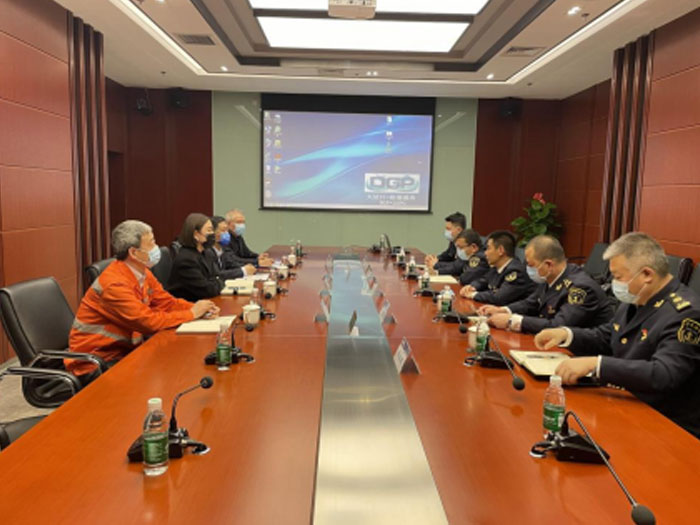 2022年3月3日下午2:00,大沽口海事局副局长冯涛带队到公司开展座谈会并进行督导检查,公司总经理吴晓、副总经理刘继忠及海机务部长参加会议。