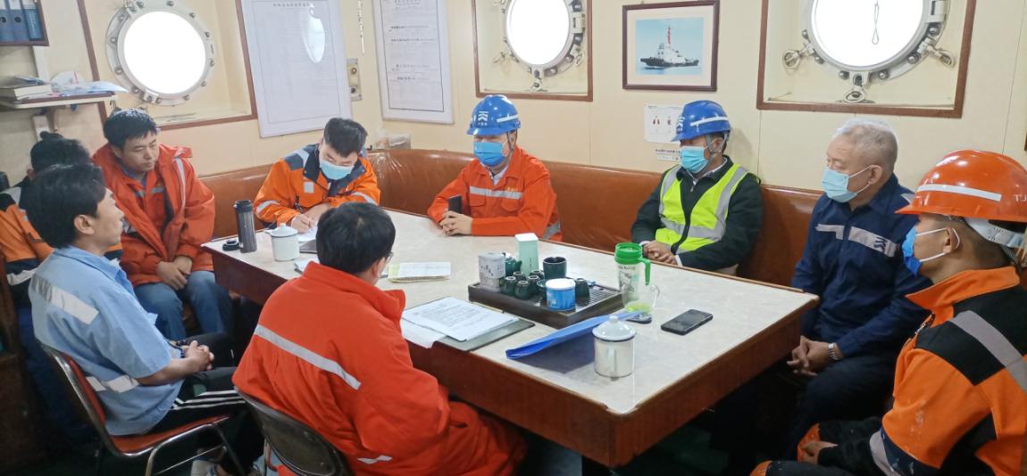为切实做好“五一”期间安全生产工作,保证公司员工度过一个安全愉快的节日,我公司安全生产副总经理路振学和海机务副总经理刘继忠于2022年4月28日上午,带领安环部、海务部、机务部、综合办公室主要负责人,对“大沽轮2”“大沽轮6”进行安全生产和疫情防控各项工作督导检查,并做出以下要求: