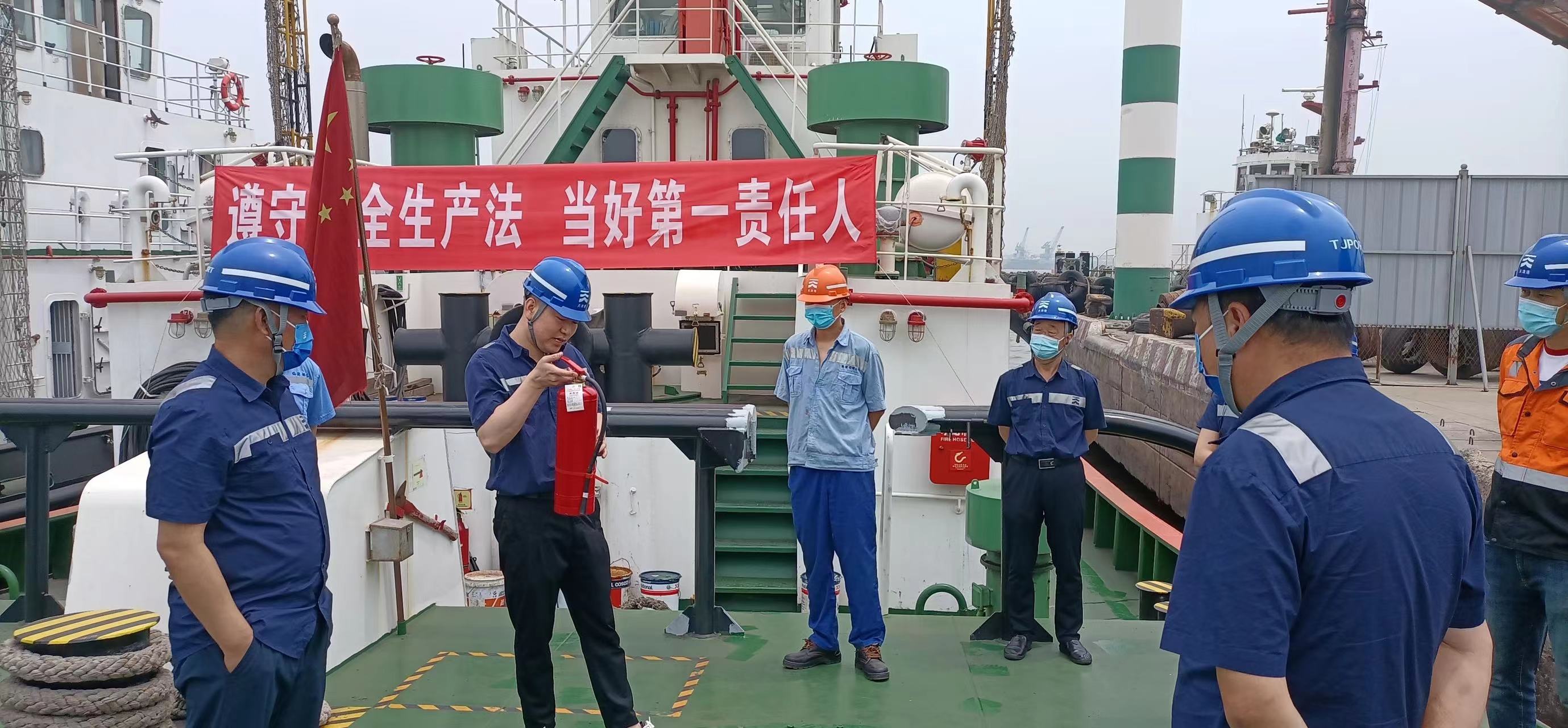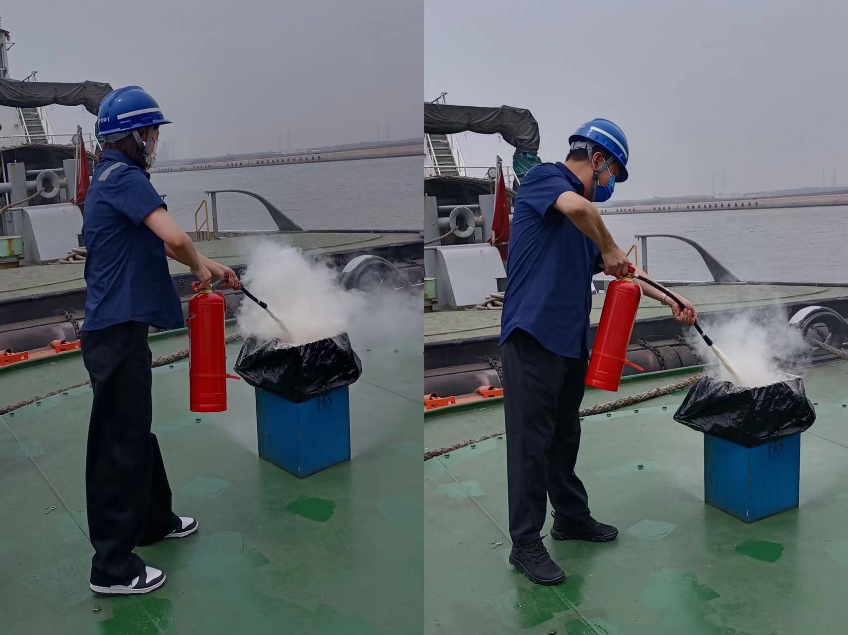 为进一步强化公司员工的消防安全教育,提高火灾控制能力和突发事件应变能力,学会正确使用灭火器及各类消防器材、设备、设施等,我公司总经理吴晓、副总经理路振学和刘继忠于2022年6月22日带领各部门主要负责人及各船舶在岗人员,在“大沽轮1”进行船舶消防器材的用途讲解及实操演练,并做出重要指示:进入夏季,并将陆续进入汛期,强风、暴雨、雷电、高温天气多发,要结合自身实际,切实做好夏季“十二防”工作。