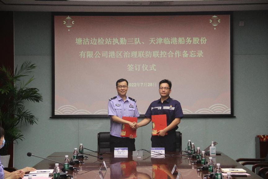 塘沽边检站执勤三队与天津临港船务股份有限公司签署港区治理联防联控合作备忘录